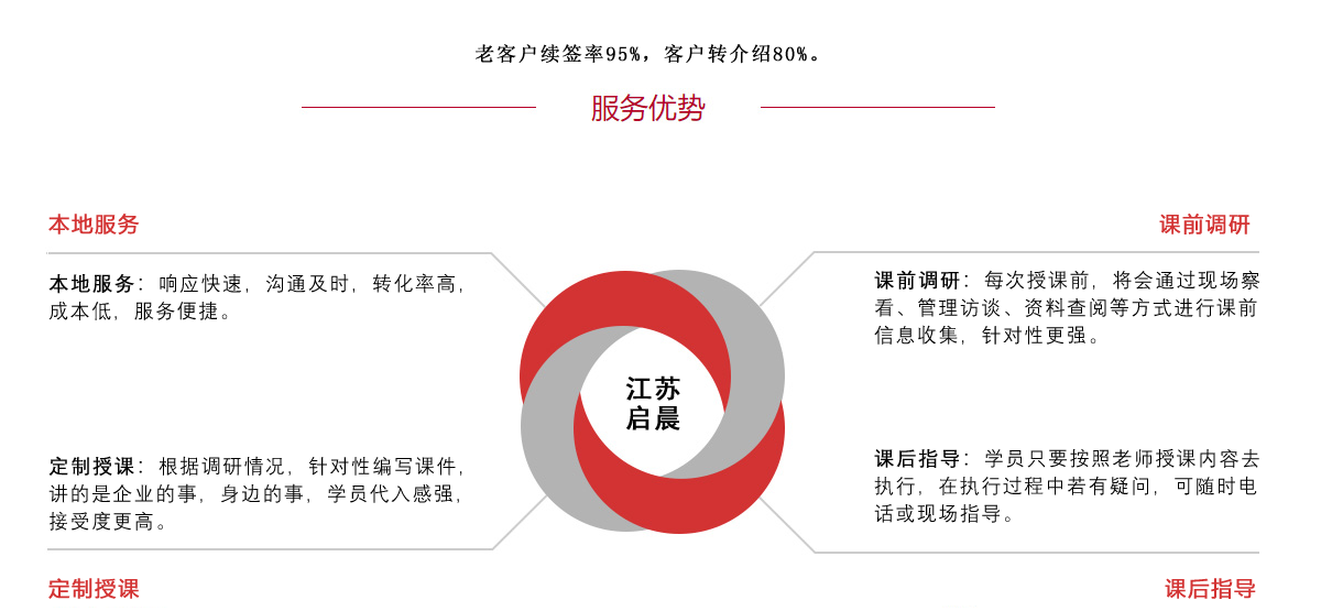企業培訓>首選>江蘇啟晨!制造業的理想選擇!江蘇啟晨企業管理咨詢有限公司位于風景秀麗的江蘇省宿遷市。公司由國內知名高校及全球500強企業內頂尖的學者、教授、企業培訓導師、企業顧問等共同打造的一家專業的管理咨詢與培訓機構。公司專注于企業生產管理、現場管理、質量管理、安全管理、市場與銷售、人力資源管理、財務管理、班組管理、員工管理、內訓?�